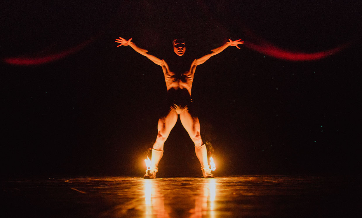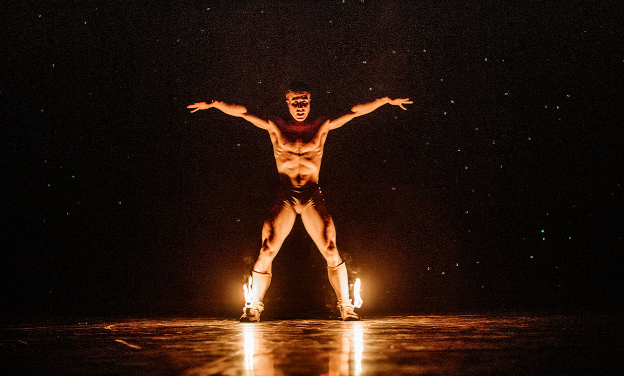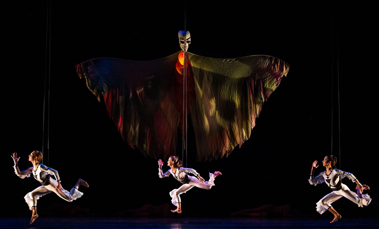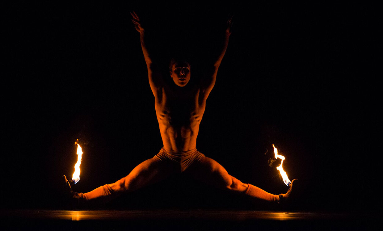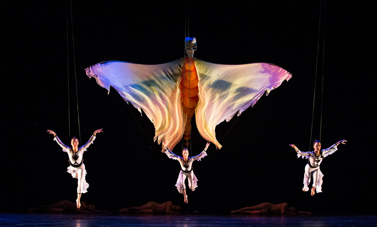 brings the Sonoran landscape to life in a kaleidoscope of desert visions, where dancers morph into towering cactuses, slithering creatures, and firelit spirits through MOMIX’s signature blend of illusion, props, costumes, and light.