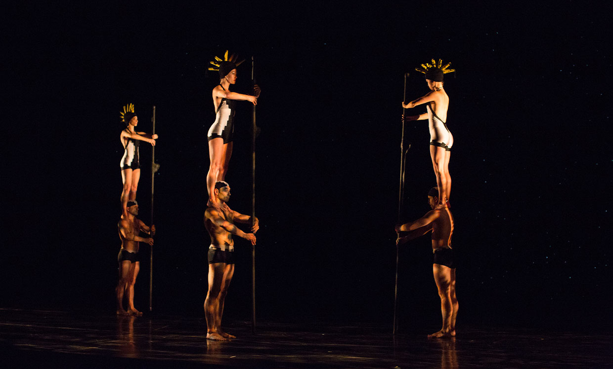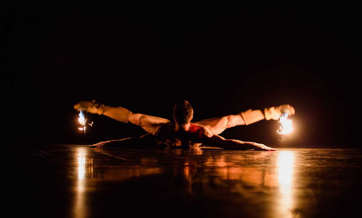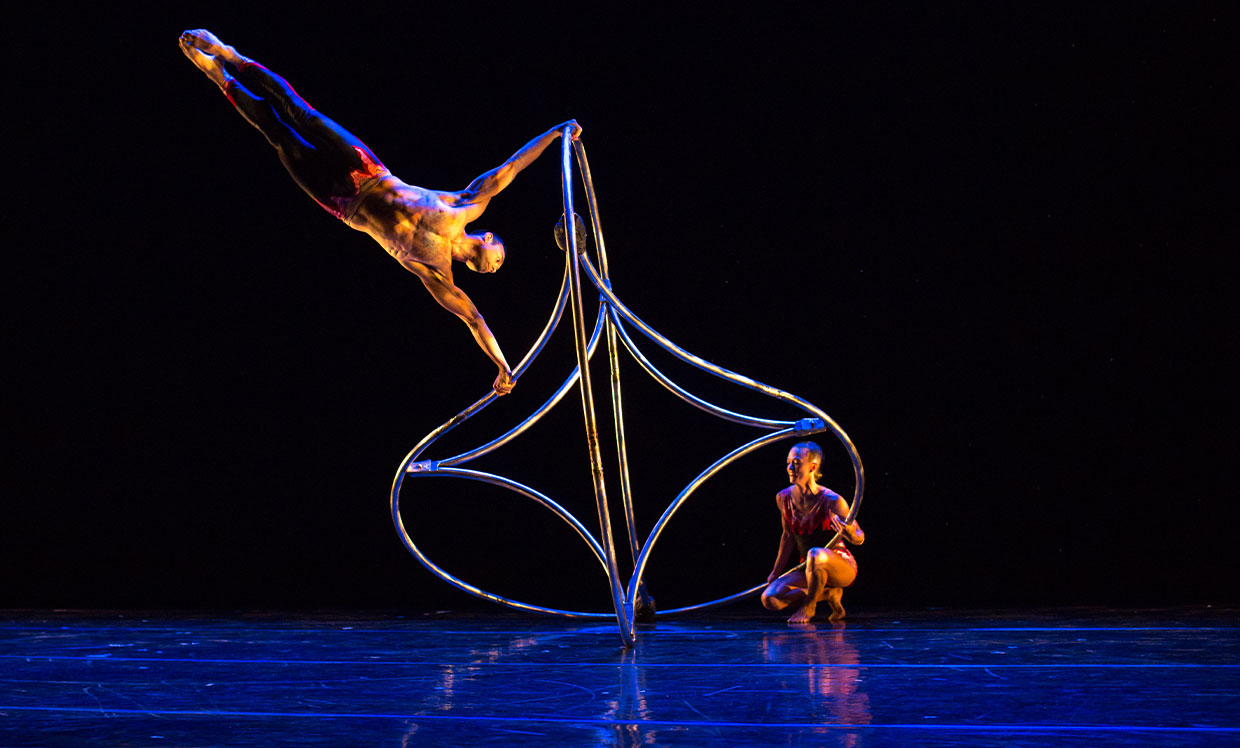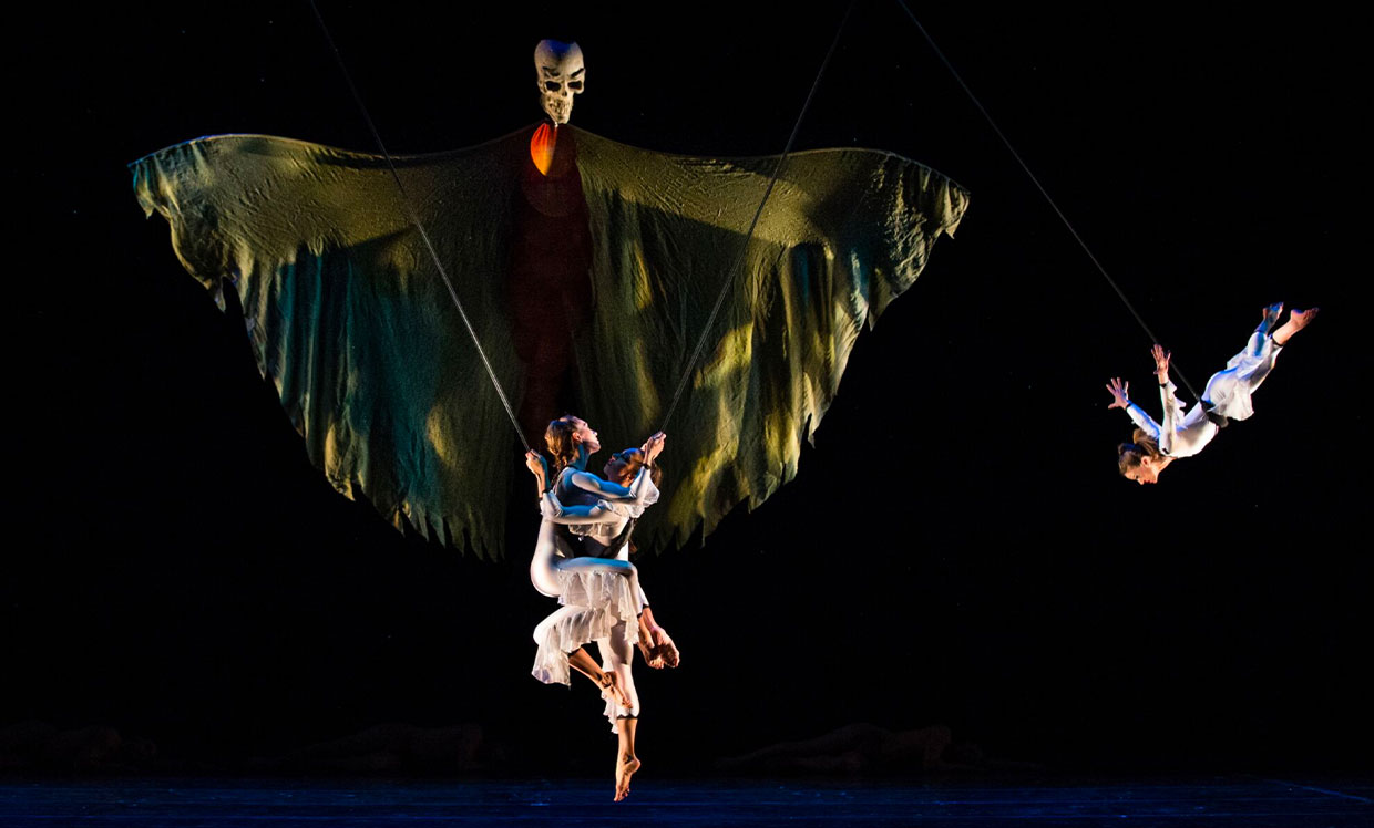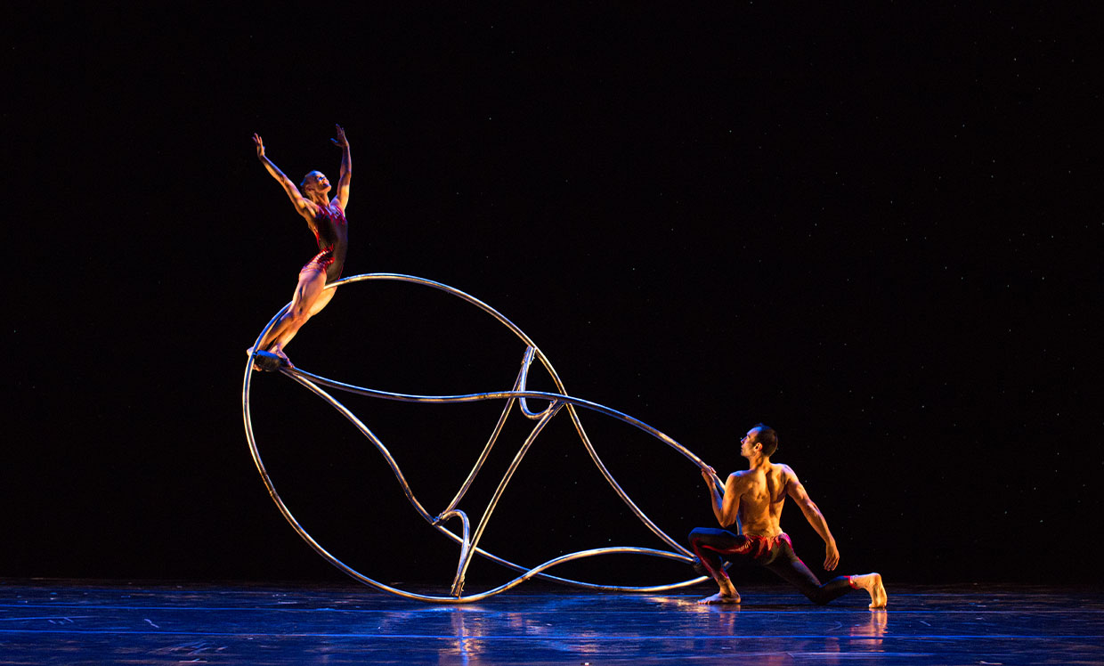 brings the Sonoran landscape to life in a kaleidoscope of desert visions, where dancers morph into towering cactuses, slithering creatures, and firelit spirits through MOMIX’s signature blend of illusion, props, costumes, and light.